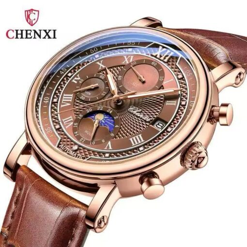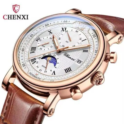 The genuine leather strap provides all-day comfort with a classic feel. It’s durable, stylish, and pairs effortlessly with both formal and casual outfits. Whether you’re suiting up or dressing down, the Chenxi Strong complements your every move.