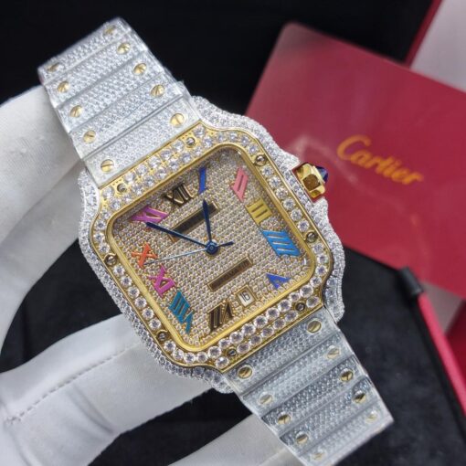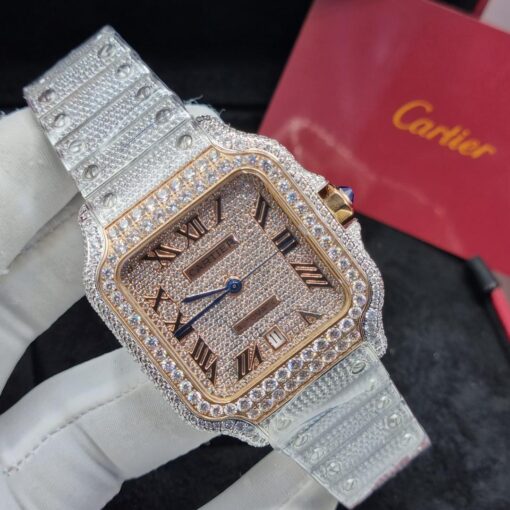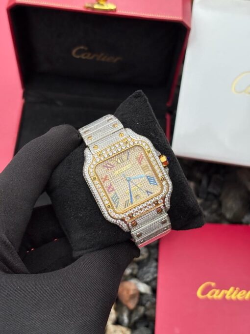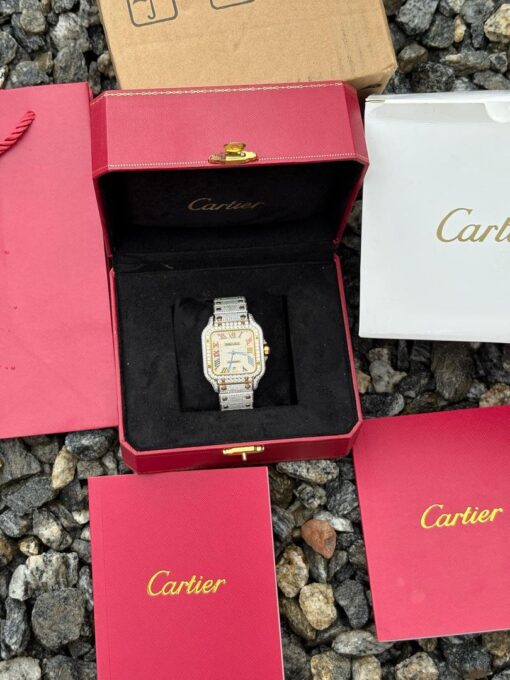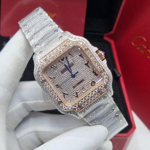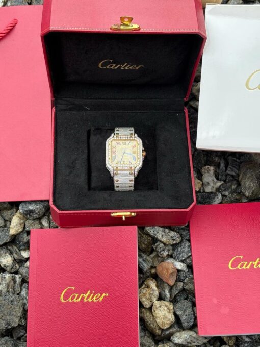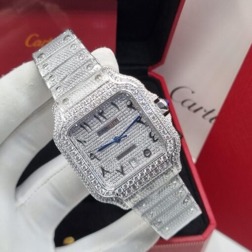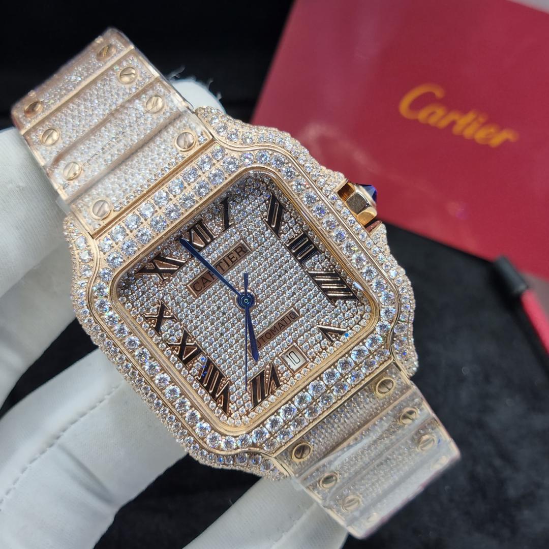 The Complete Ice Cartier Wristwatch isn’t just a timepiece—it’s a bold declaration of style and success. Wrapped in glistening stones that shimmer from every angle, this watch delivers an unmistakable air of opulence. Whether you’re closing deals or attending upscale events, it makes a statement before you say a word.