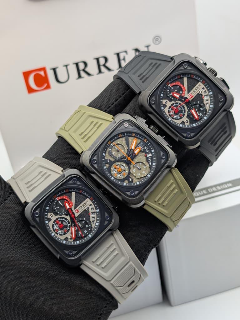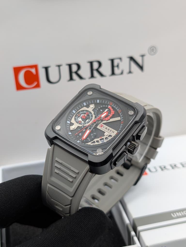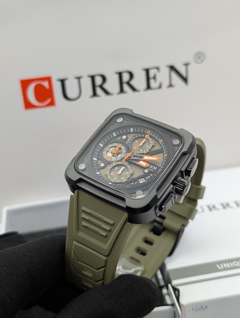 The Curren Rubber Strap Chronographic Watch is a timepiece designed for men who value both fashion and functionality. With a sleek chronograph dial, durable rubber strap, and robust build, it complements any outfit while delivering reliable performance. Its modern style ensures it transitions effortlessly from casual wear to business settings.