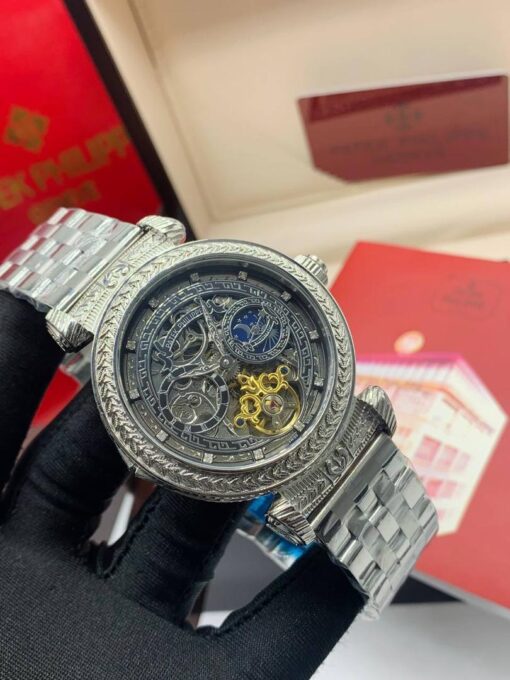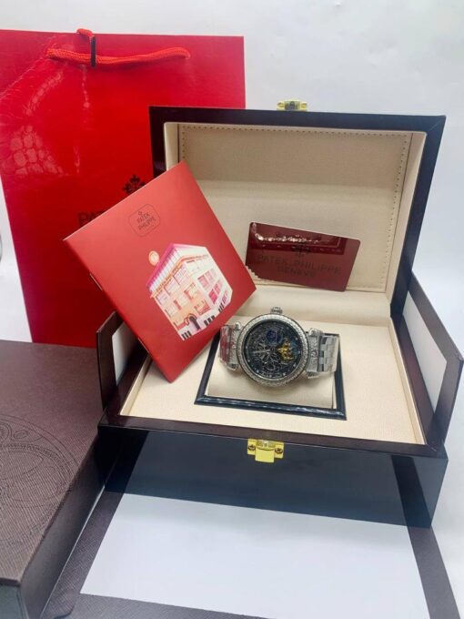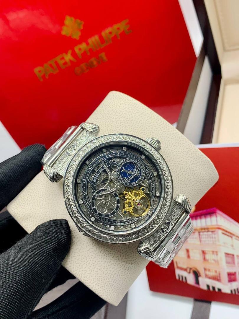 Every detail of this Patek timepiece is engineered for perfection. The sleek dial is housed in a durable, polished case that resists wear while maintaining a sophisticated finish. The watch movement is finely tuned to ensure precise timekeeping—no delays, no guesswork, just perfect accuracy.