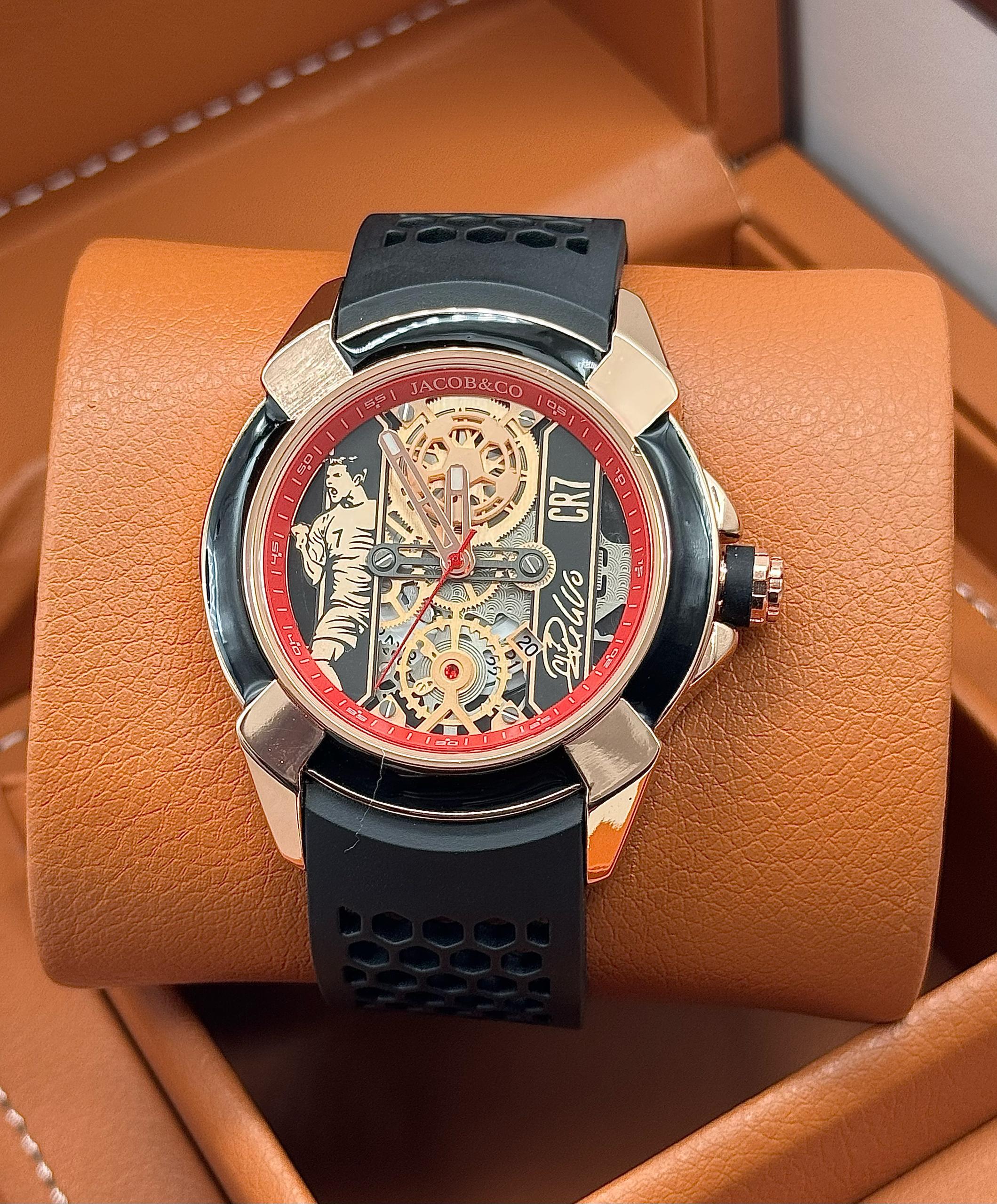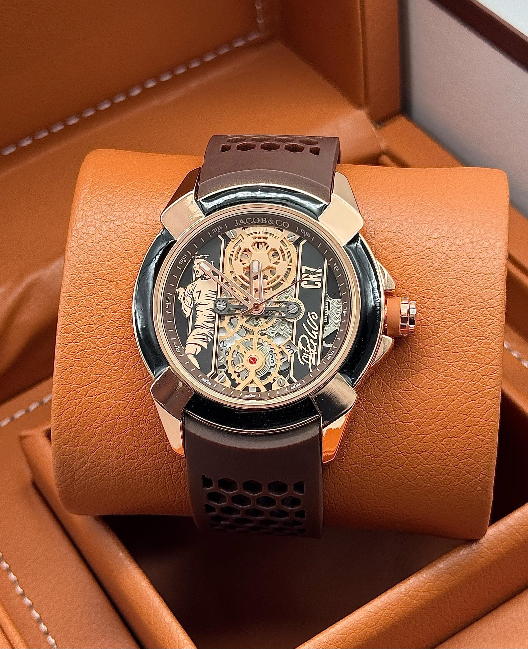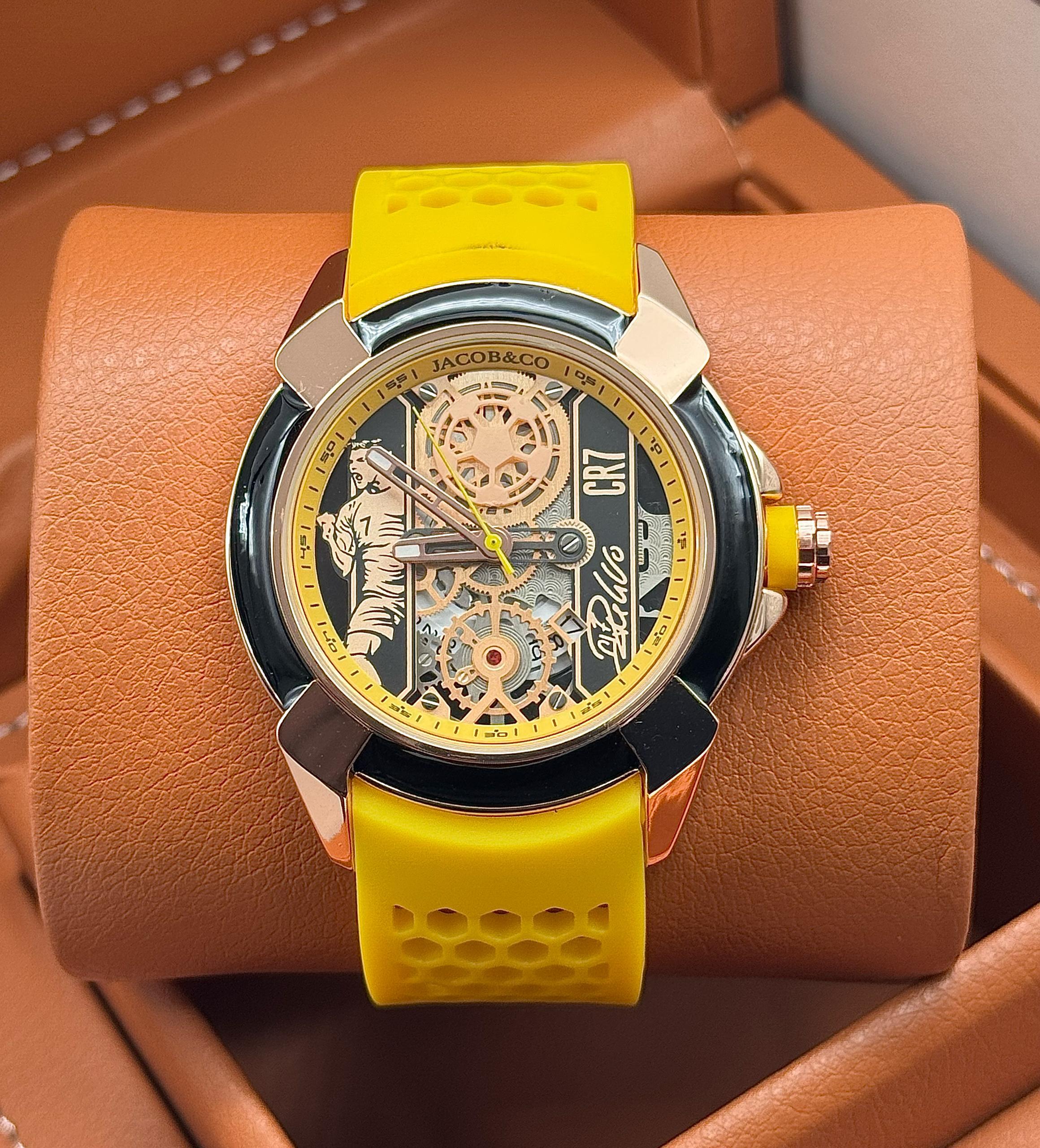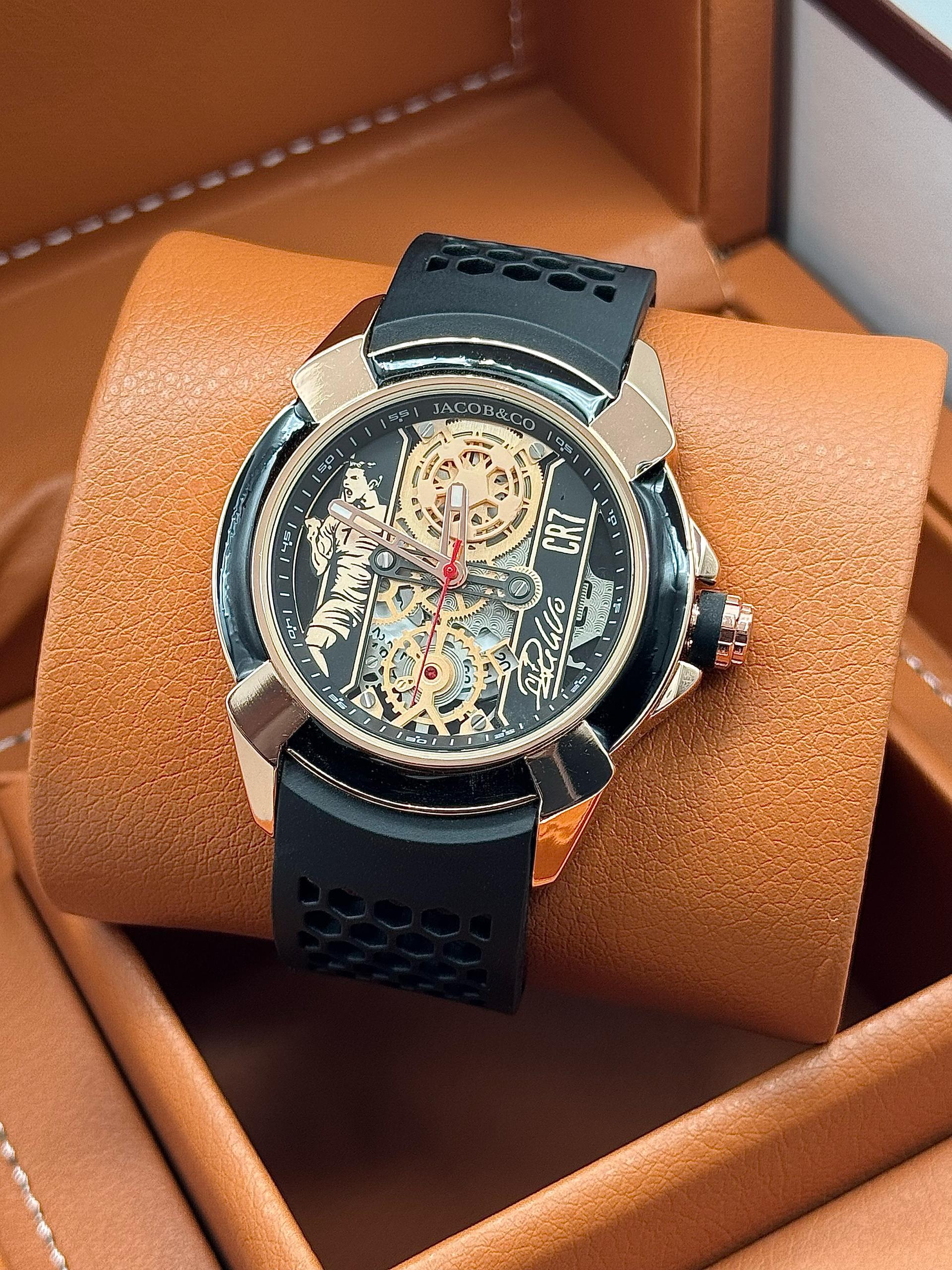 Elevate your wrist game with the exclusive JACOB & CO Wristwatch (CR7 Edition) — a timepiece that mirrors the excellence of football legend Cristiano Ronaldo. Designed for those who live boldly, this watch fuses high horology with luxury aesthetics, making it a standout piece in any collection.