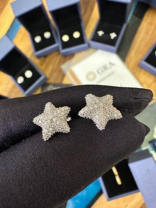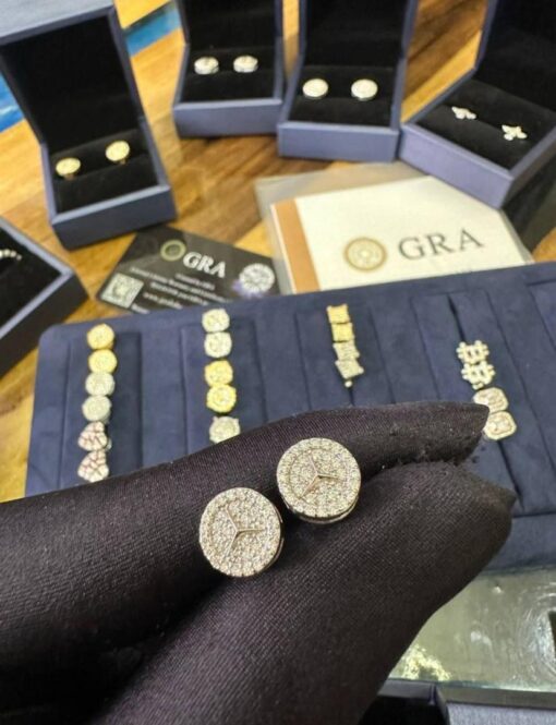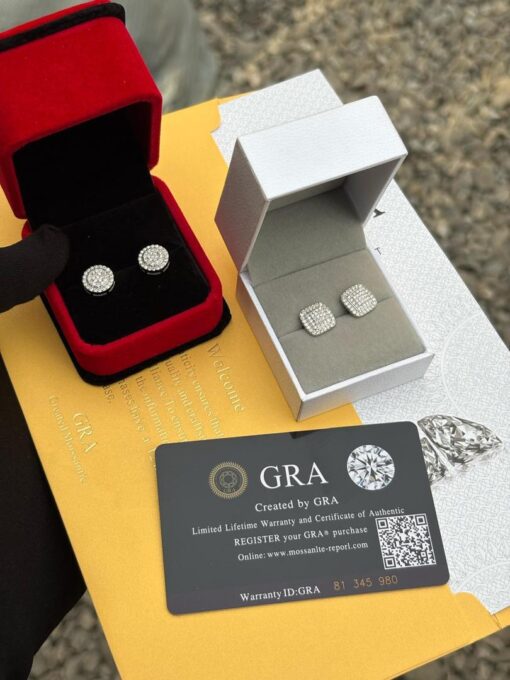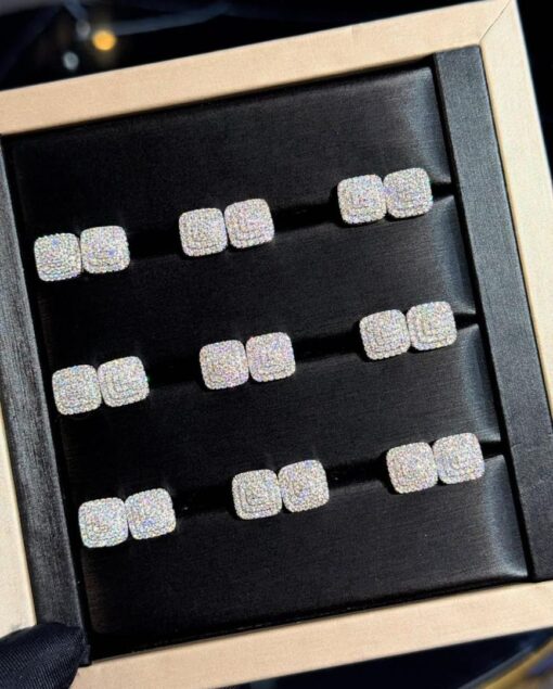 Each pair is meticulously crafted with the highest attention to detail, ensuring that the VVS1 Moissanite diamonds are securely set to highlight their natural beauty. The clarity and precision of the diamonds guarantee a flawless finish, making these earrings the perfect accessory for anyone who appreciates luxury and sophistication.