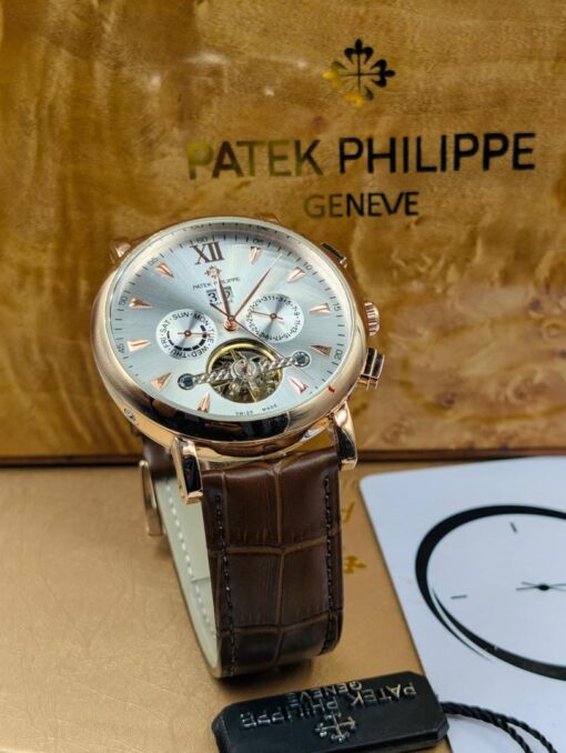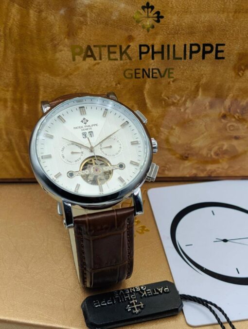 Introducing the PATEK PHILIPPE LEATHER STRAP WATCH — a sophisticated timepiece that reflects true craftsmanship, built for discerning individuals who appreciate understated luxury and reliable performance. With its soft genuine leather strap and expertly engineered automatic movement, this watch blends comfort, precision, and style in one sleek package.