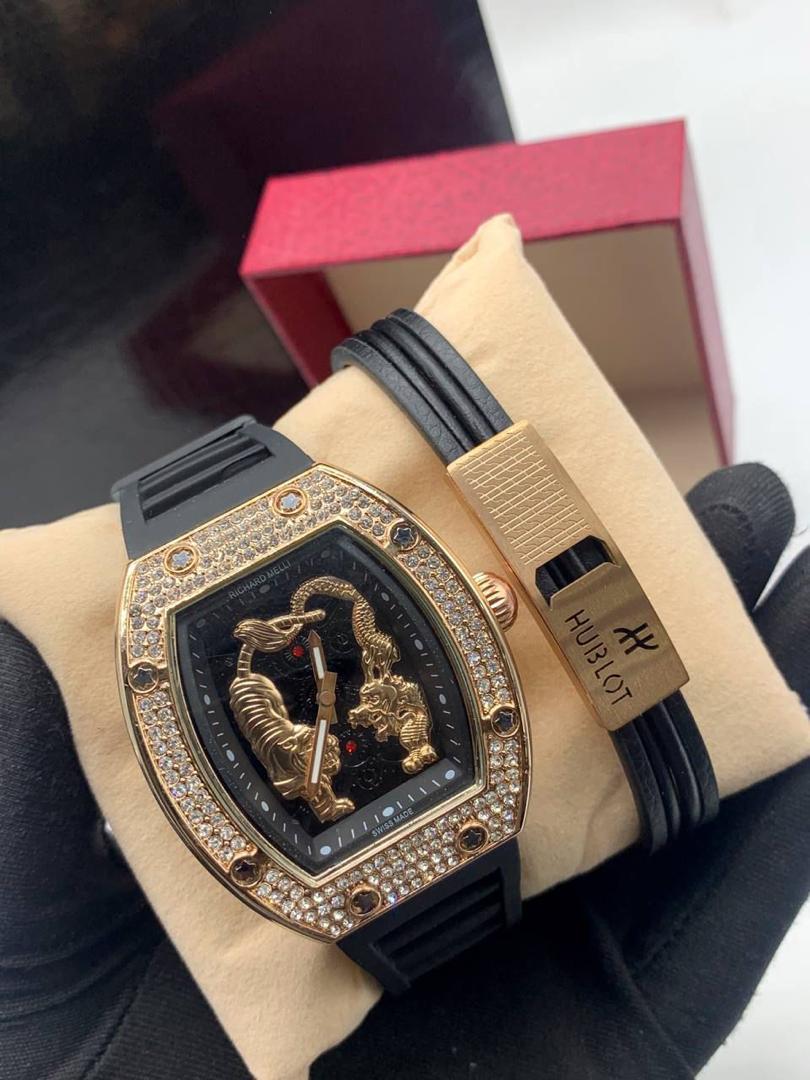 The Richard Mille Wristwatch Set is made for individuals who appreciate exclusivity, bold style, and exceptional detailing. With its futuristic appeal and unmatched presence, this wristwatch and bracelet combo adds an instant touch of authority to your appearance. Whether it’s a gift or an addition to your luxury lineup, it’s a timeless investment in style.