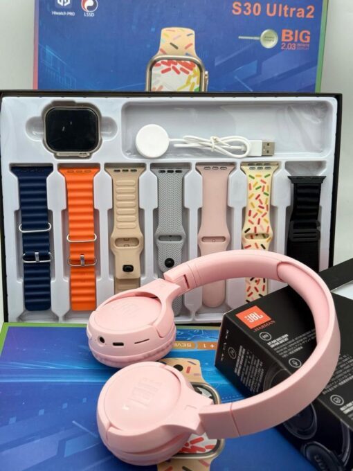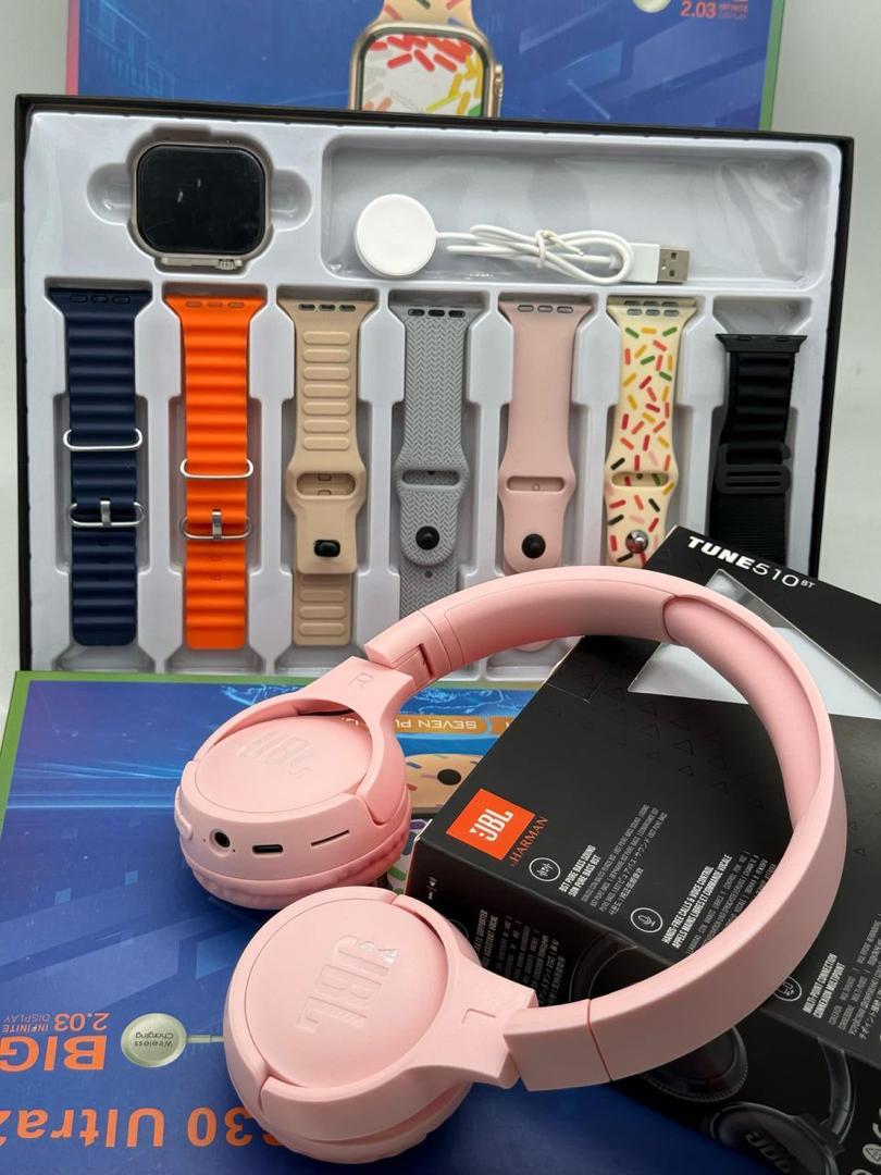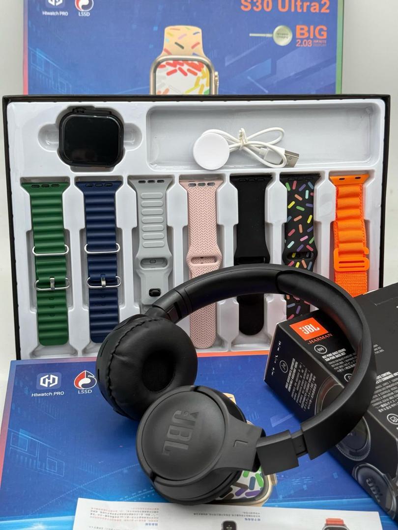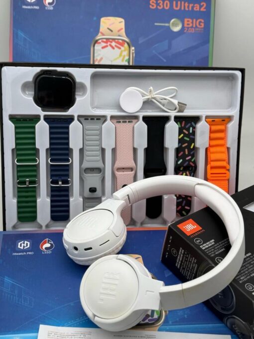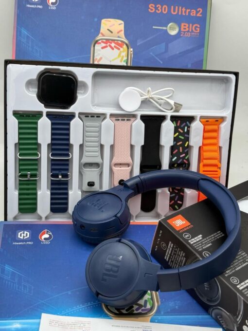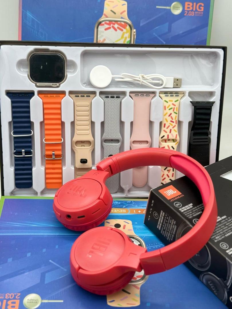 This smartwatch set isn’t just about looks; it’s about bringing together functionality, style, and top-tier audio quality in one package. The 7 extra straps allow for endless customization, the JBL headset enhances your music and call experiences, and the luxury box ensures this set feels as premium as it truly is. It’s more than just a smartwatch—it’s a lifestyle upgrade.